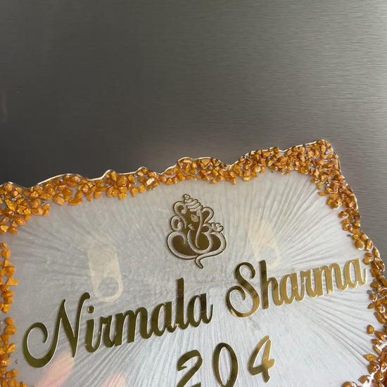 Make your mark with our 9'12 inch Golden Grain Nameplate. This elegant and sophisticated piece offers a touch of luxury to any space, displaying your name in a stunning golden grain finish. Stand out from the crowd and make a statement with this personalized nameplate.