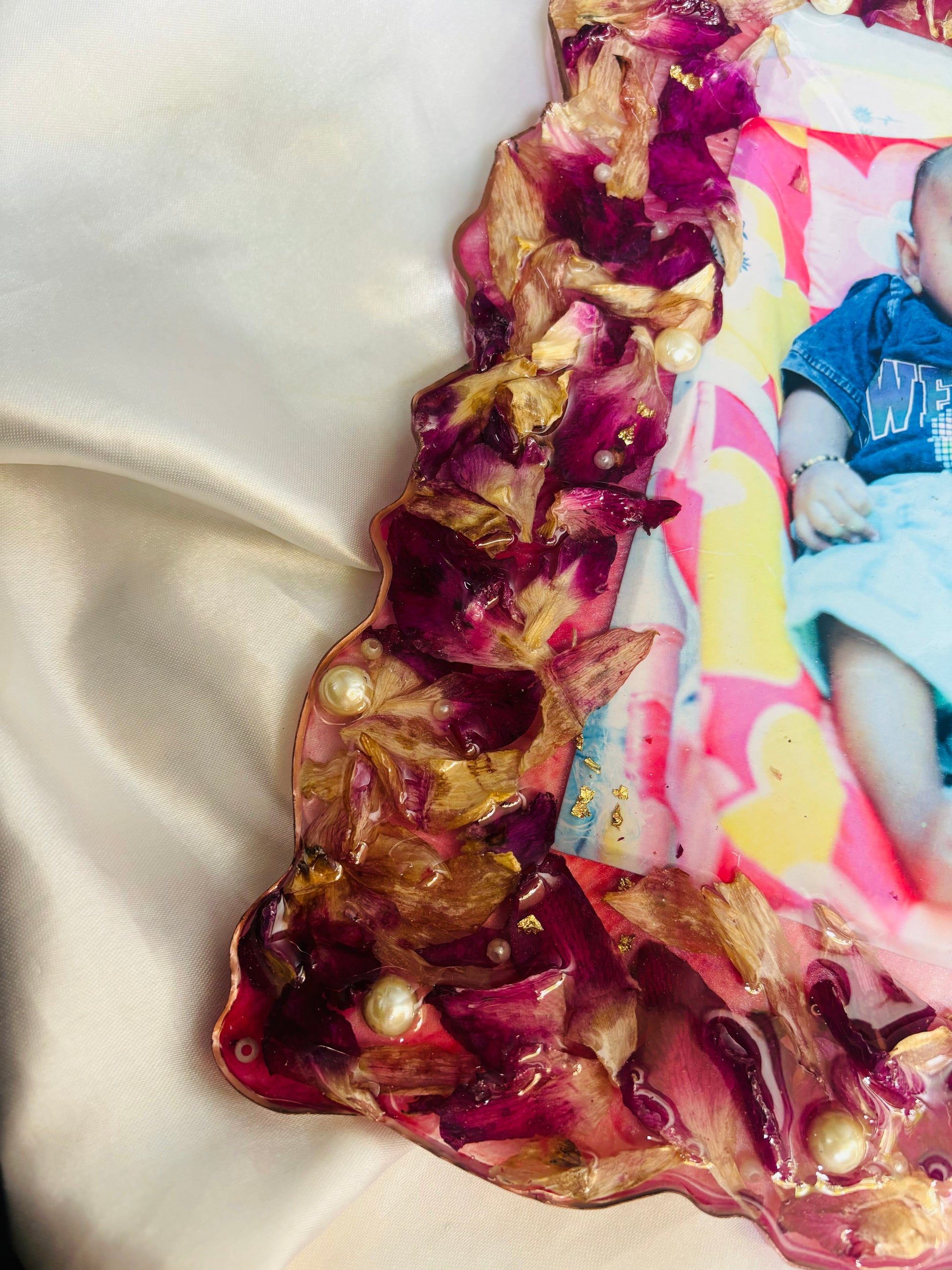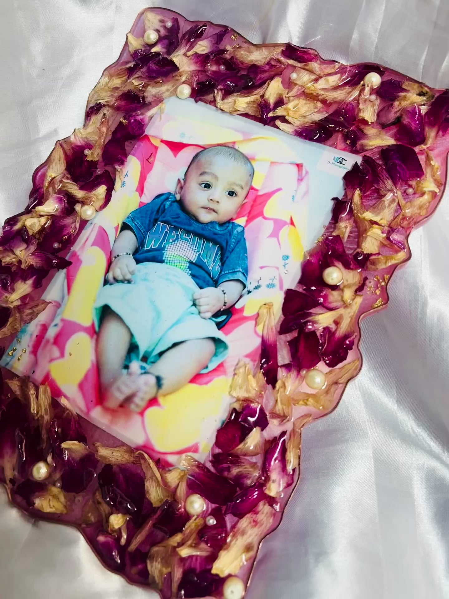 Preserve your cherished memories with the 9’12 Inches Radiant Memory Frame. Adorned with beautiful Shyam Baba rose petals, this frame is a perfect way to honor your loved ones. Display it in your home to add a touch of love and warmth to any room.