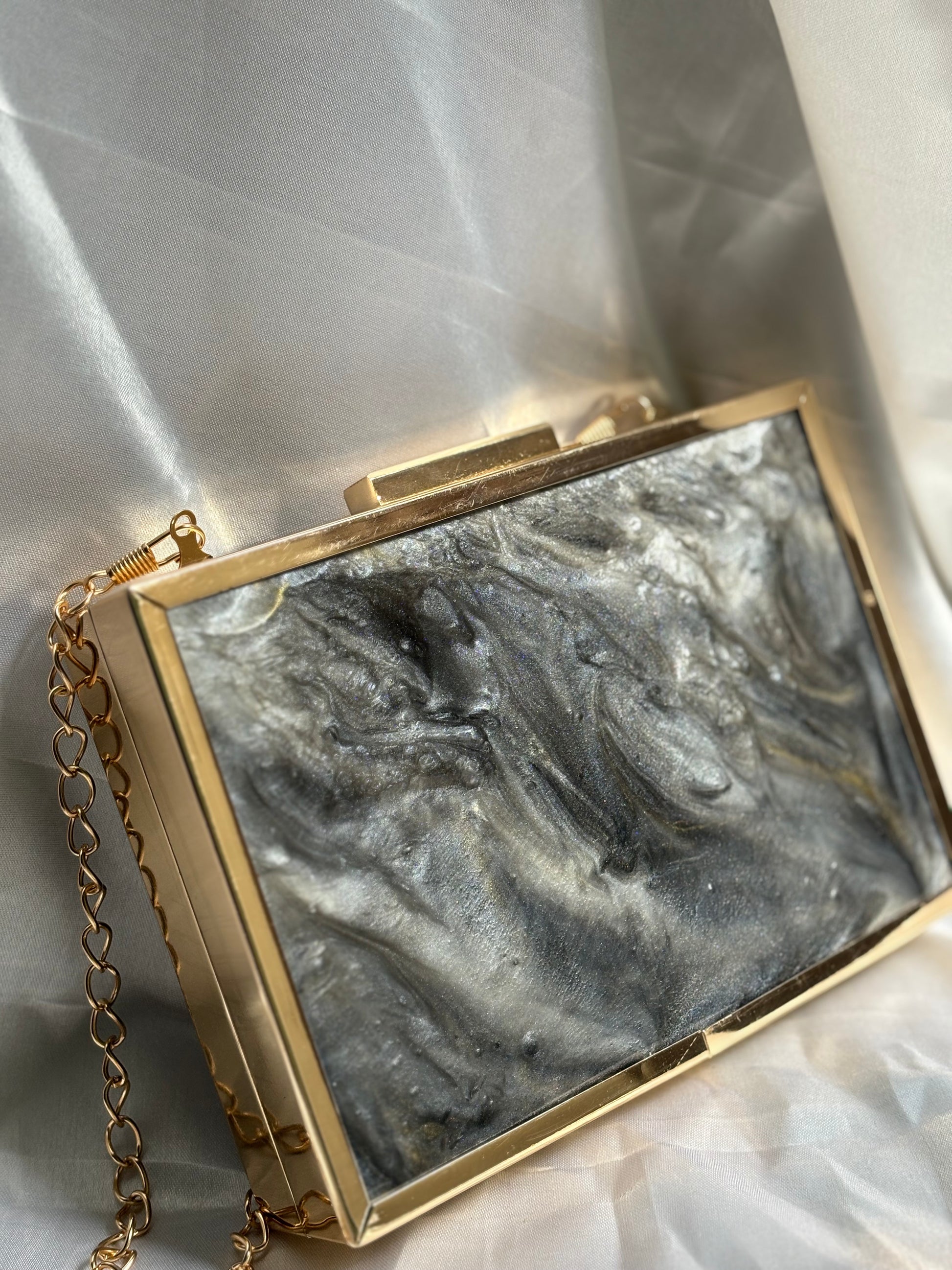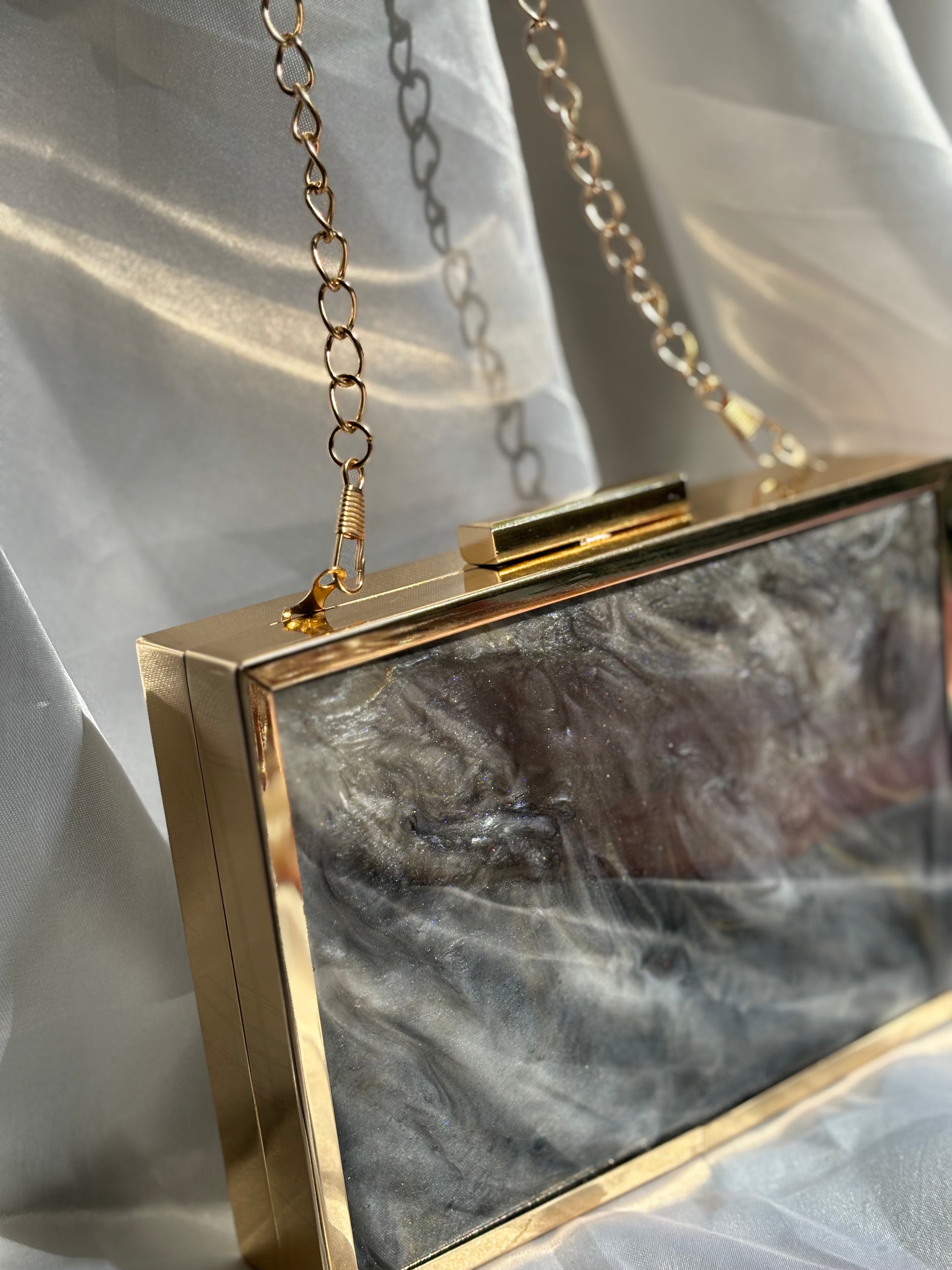 This beautiful RESIN CLUTCH is an essential accessory for any fashion-forward individual. Experience the luxurious feel of high-quality resin while adding a touch of elegance and style to any outfit. Perfect for any occasion, this clutch is a must-have for those who appreciate fine craftsmanship and attention to detail. Elevate your look with the RESIN CLUTCH!